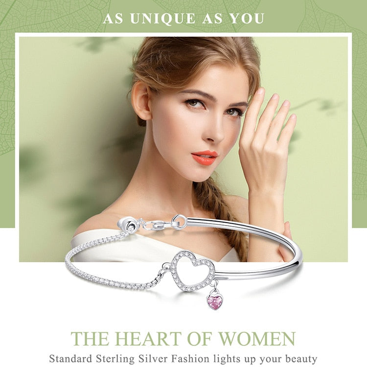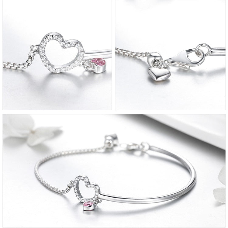 Bracciale rigido rosa a forma di cuore in argento sterling 925