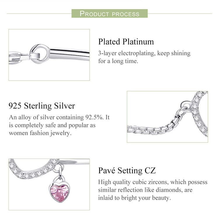 Aggiungi un tocco di eleganza romantica al tuo stile con il nostro bracciale rigido rosa a forma di cuore in argento sterling 925. Questo accattivante pezzo presenta dei bellissimi disegni a forma di cuore con accenti rosa, realizzati in argento sterling 925 di alta qualità. Perfetto per aggiungere un pizzico di fascino e raffinatezza a qualsiasi outfit.