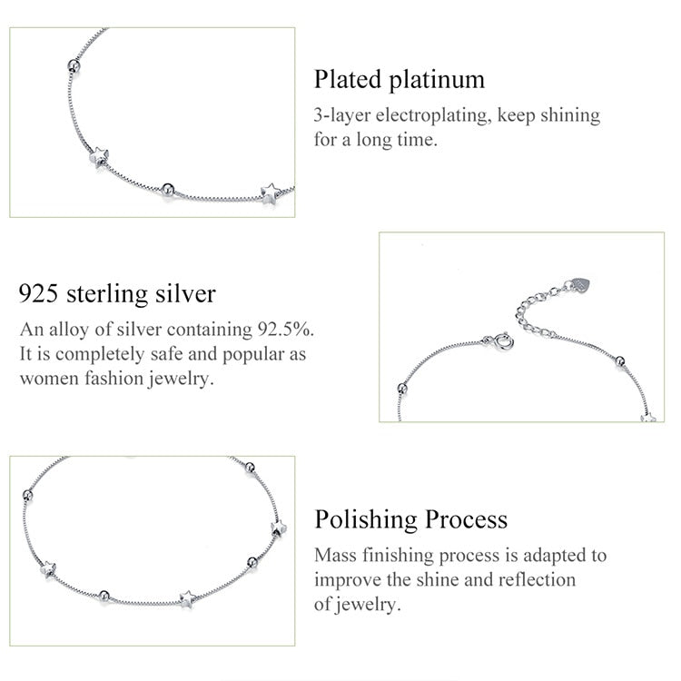 Bracciale in argento sterling 925 con perline a forma di cuore e stella