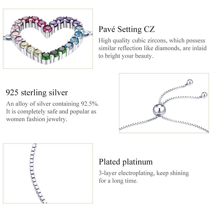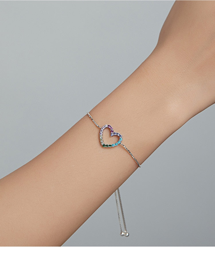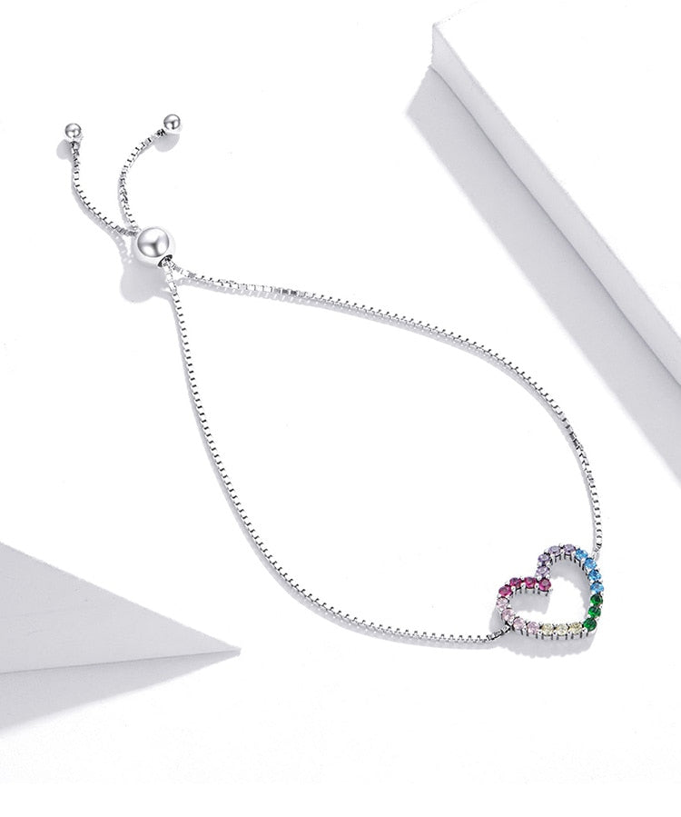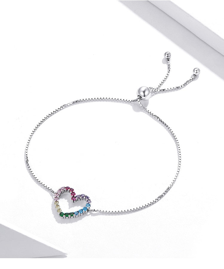 Bracciale in argento sterling 925 con cuore colorato arcobaleno