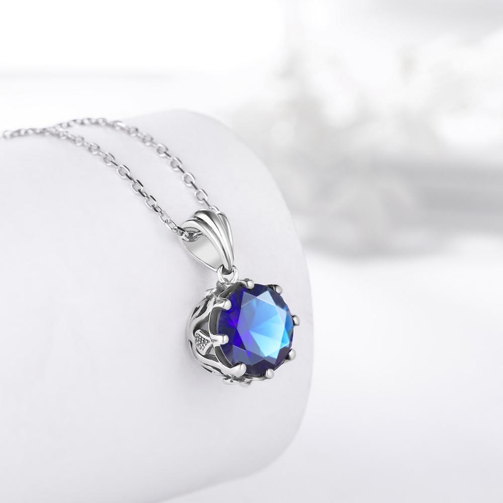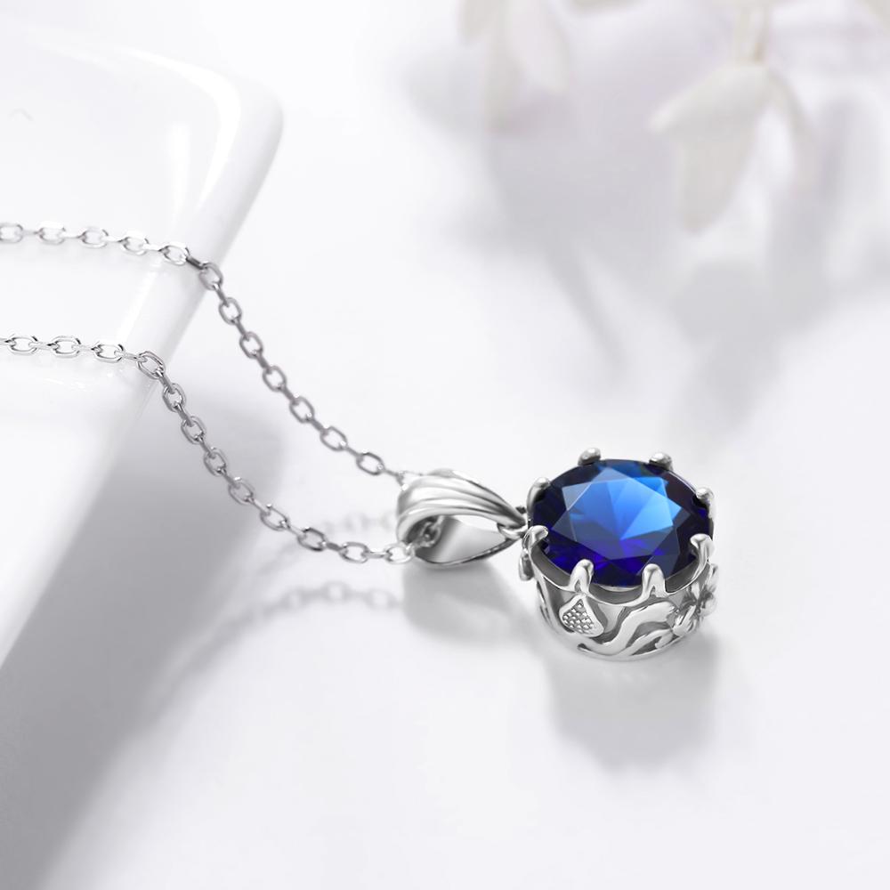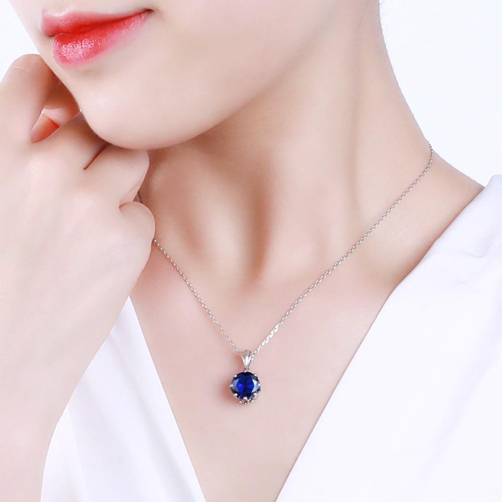 Vero argento sterling 925 carino ciondolo a forma di fiore con zaffiro blu collana da donna