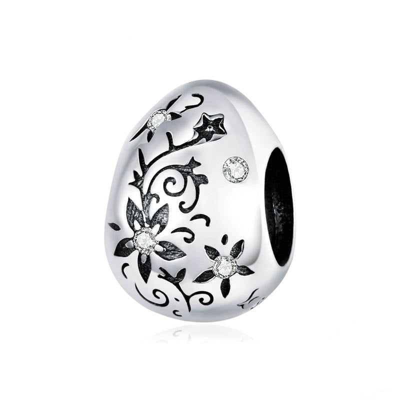 Ciondoli in argento sterling 925 a forma di uovo di Pasqua con fiore retrò