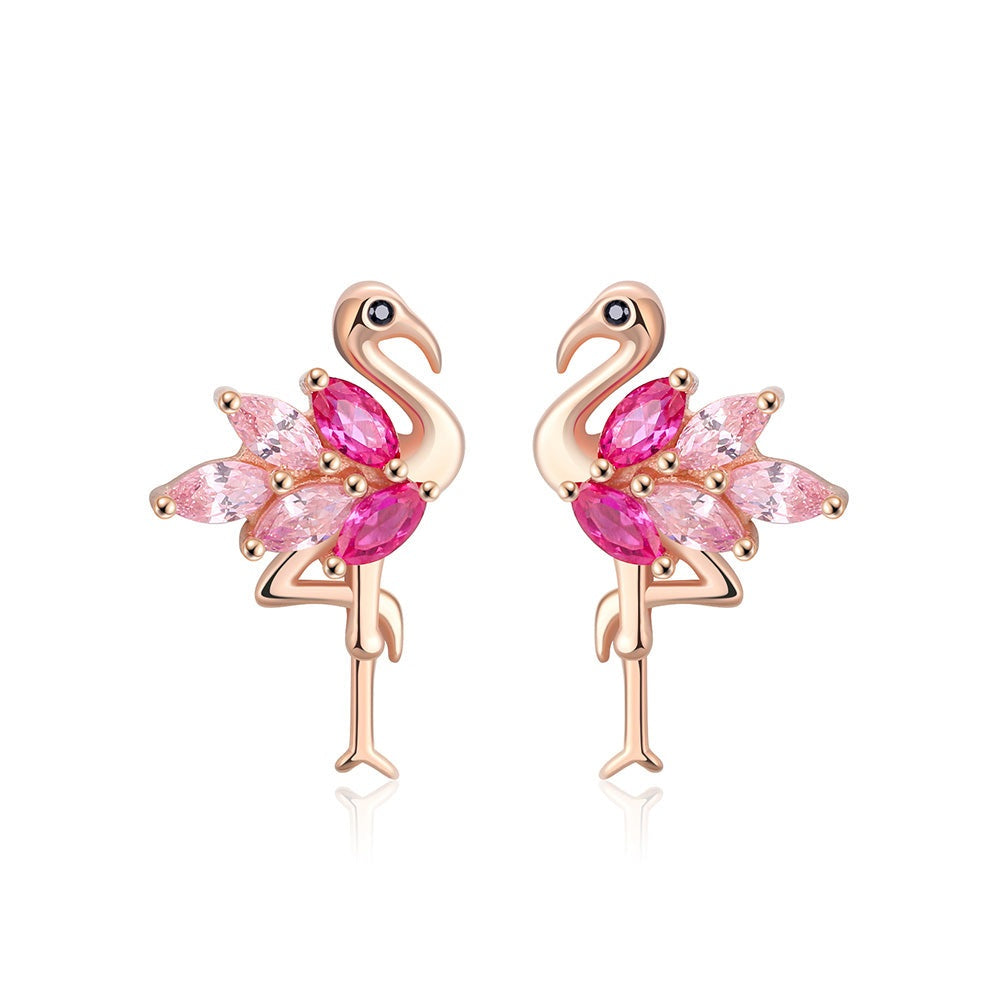 925 Sterling Silver Flamingo Bird Stud Earrings