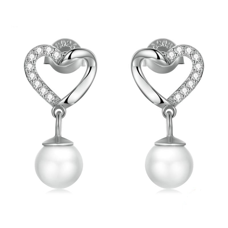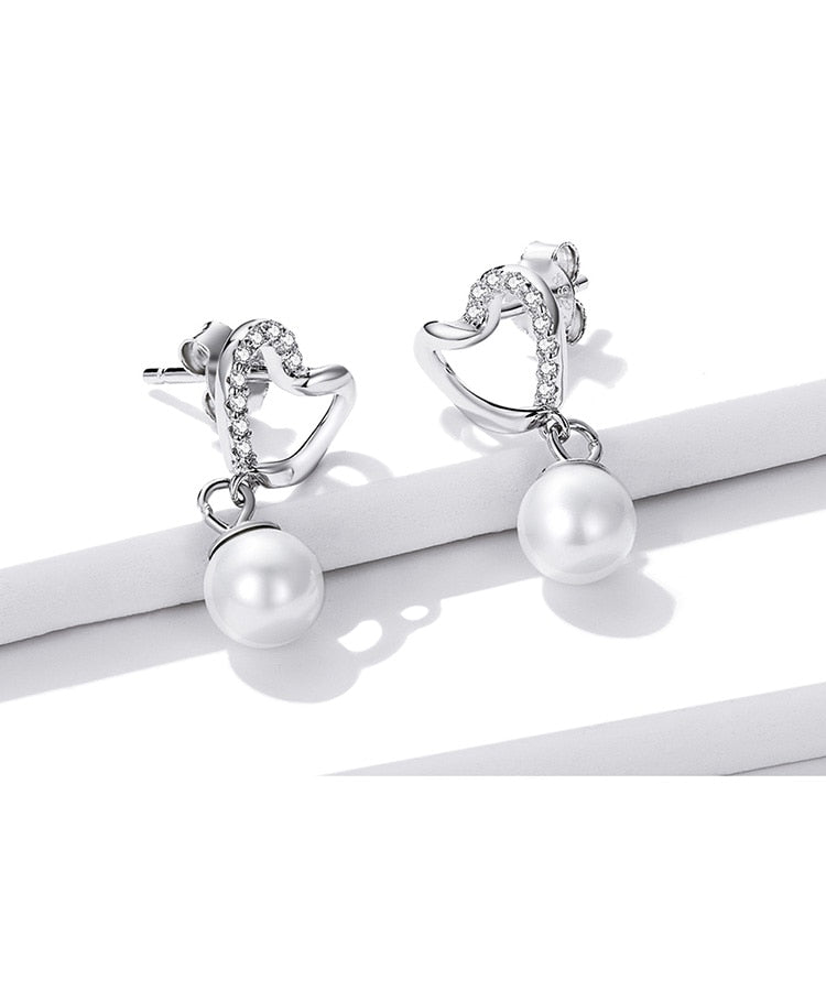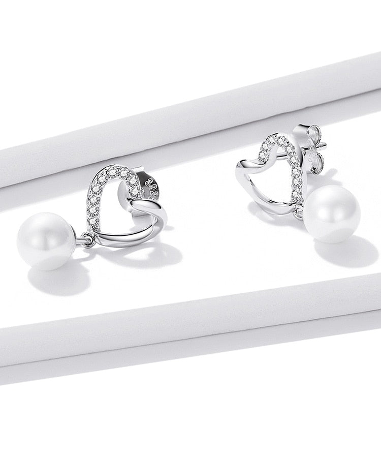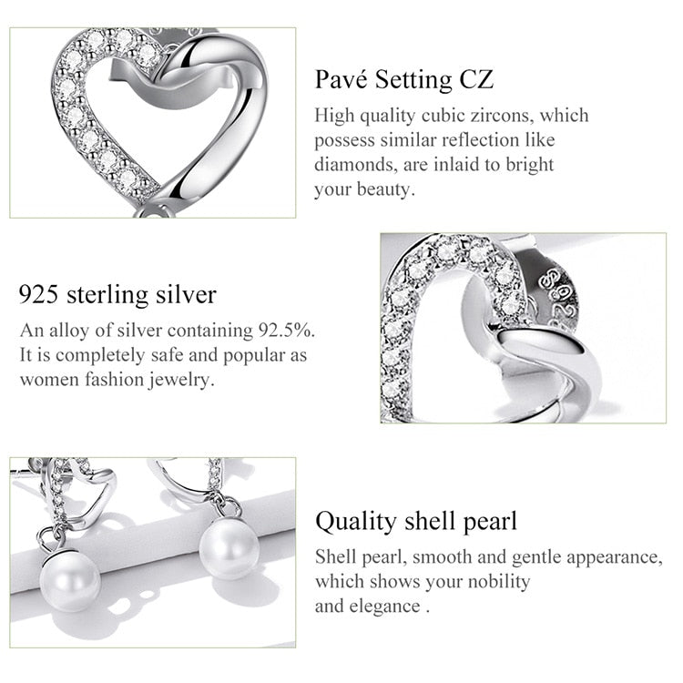 925 Sterling Silver Love Shell Pearl Drop Earrings