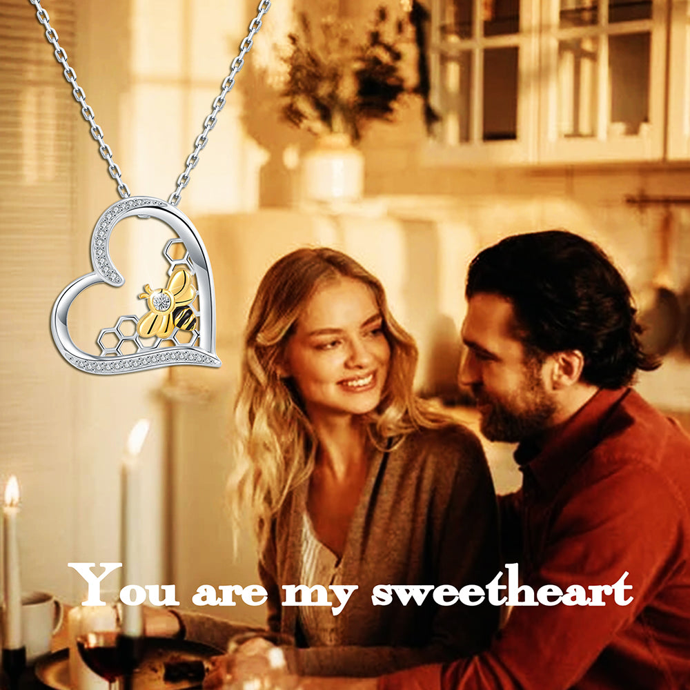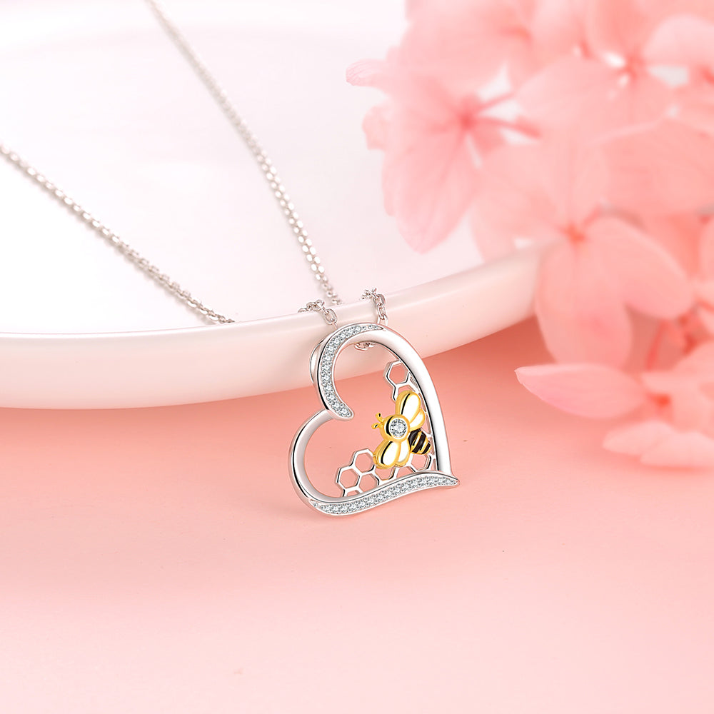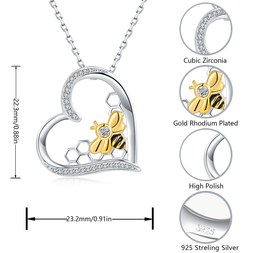 925 Sterling Silver Heart Honeycomb Bee Necklace