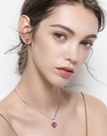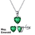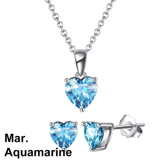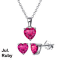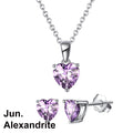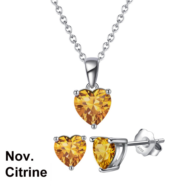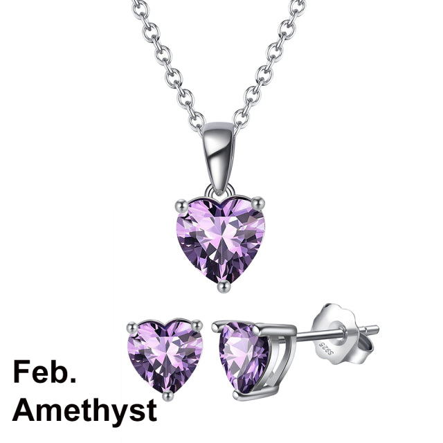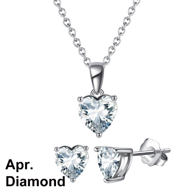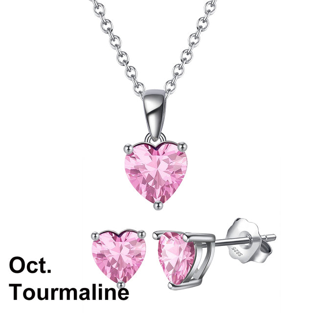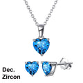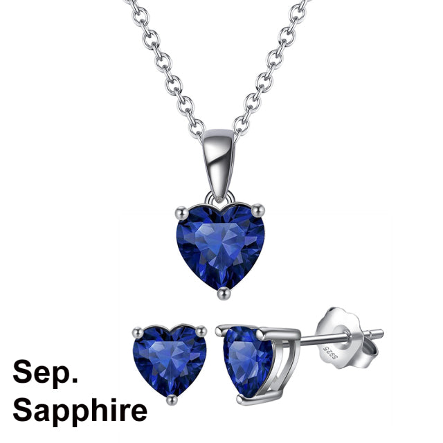 925 Sterling Silver Heart Stone Earrings Necklace Jewelry Set
