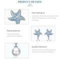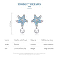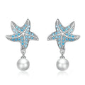 925 Sterling Silver Ocean Blue Starfish with Pearl Stud Earrings