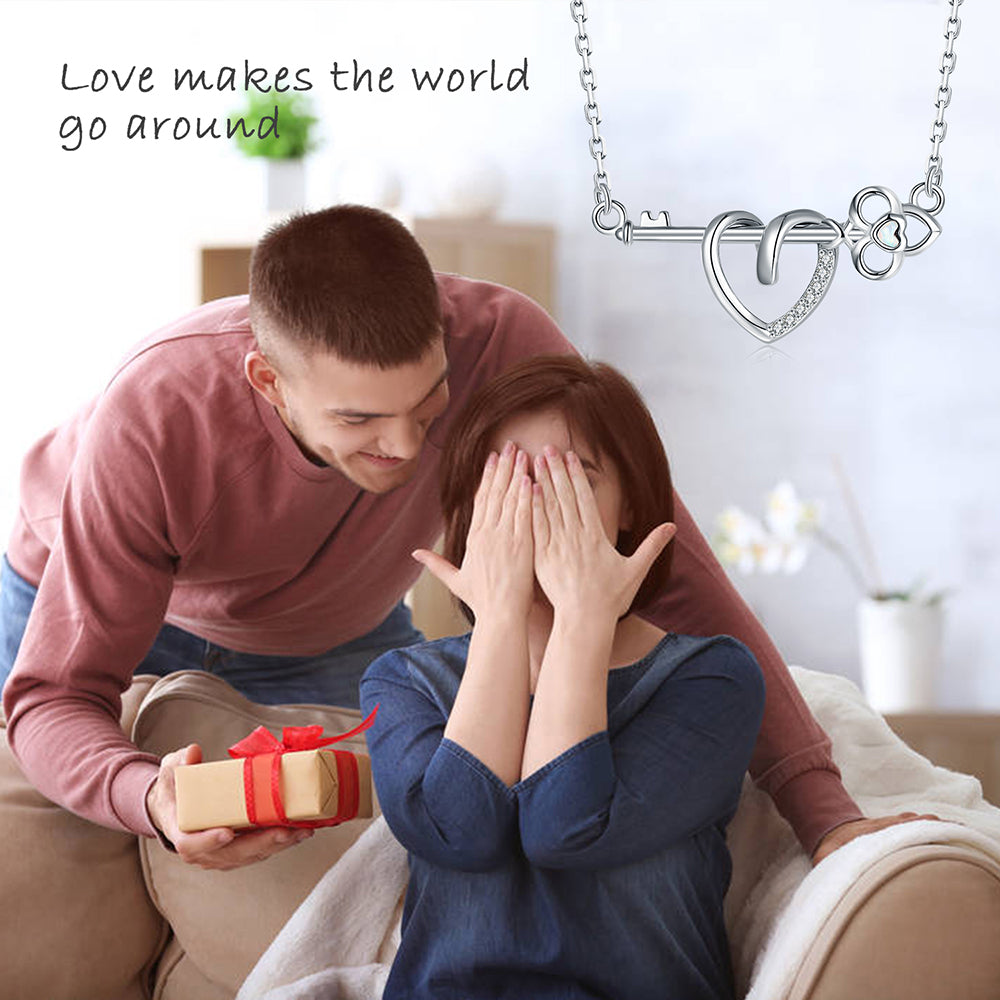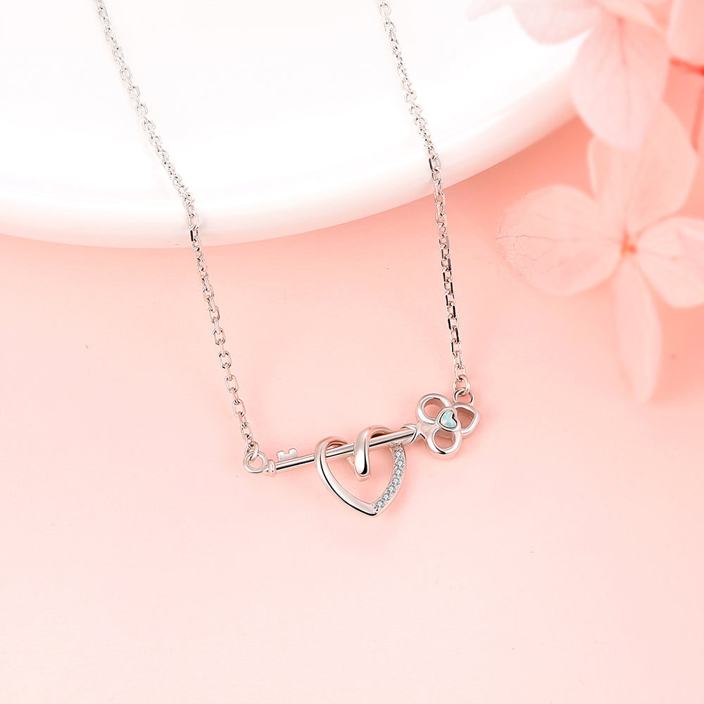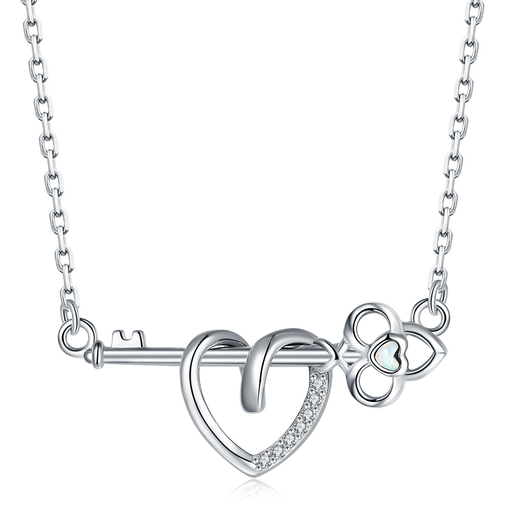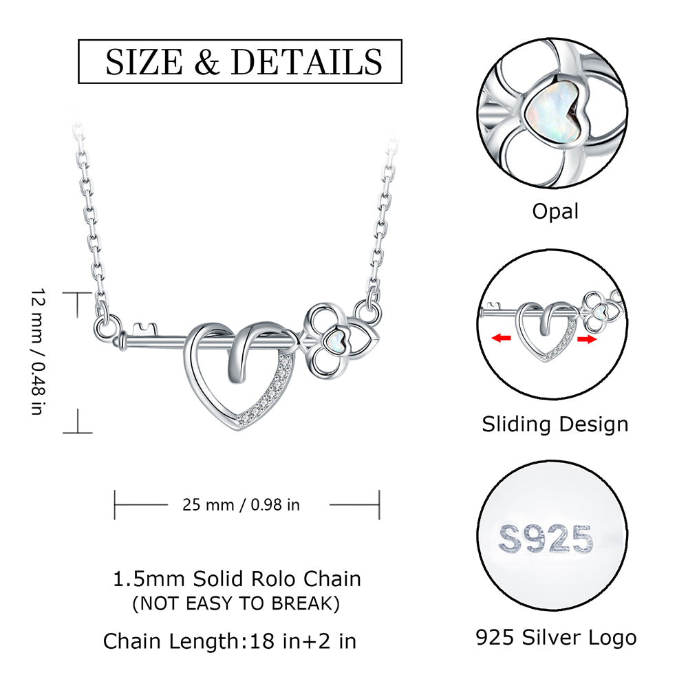 925 Sterling Silver Opal Key and Heart Necklace