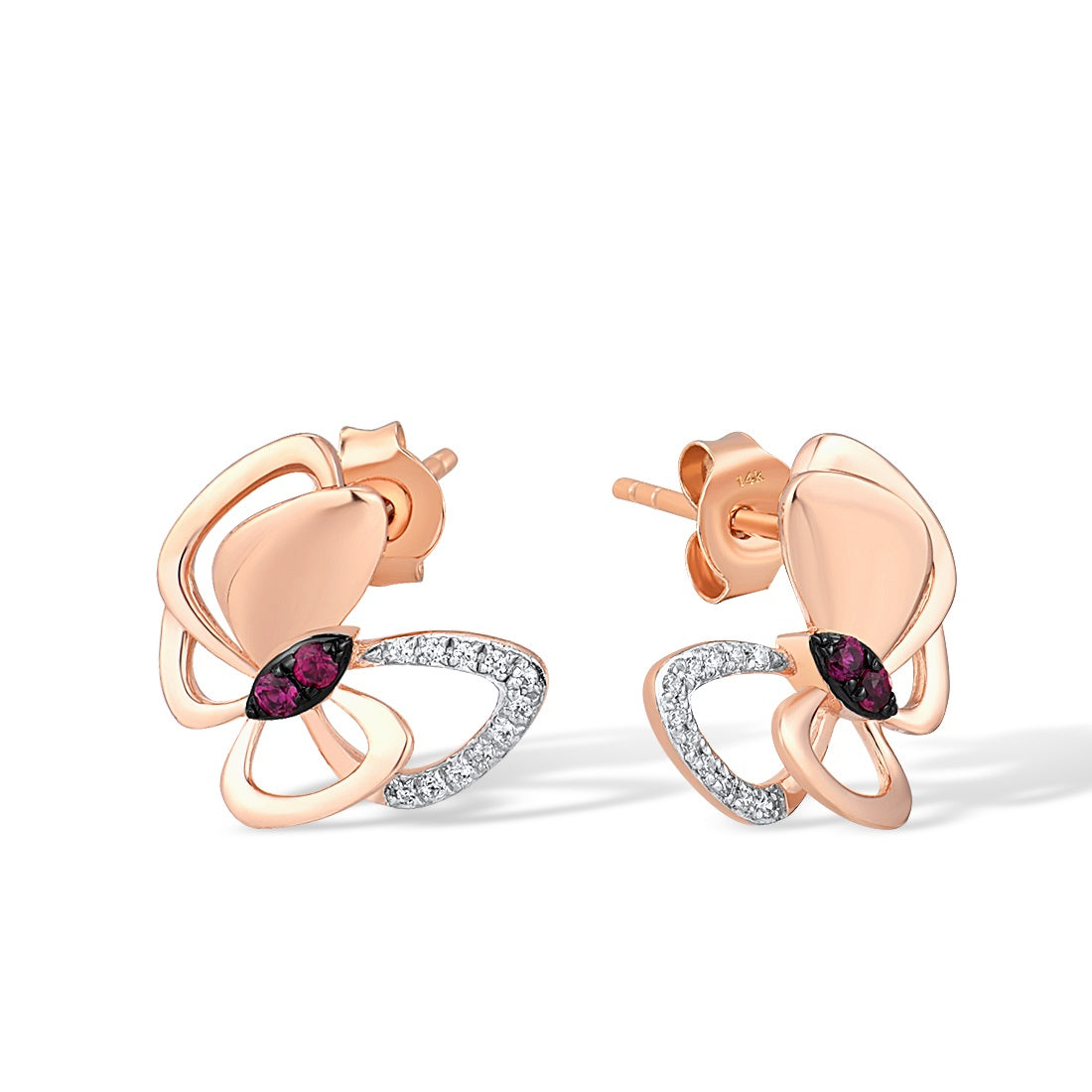 Genuine 14K 585 Rose Gold Butterfly Stud Earrings