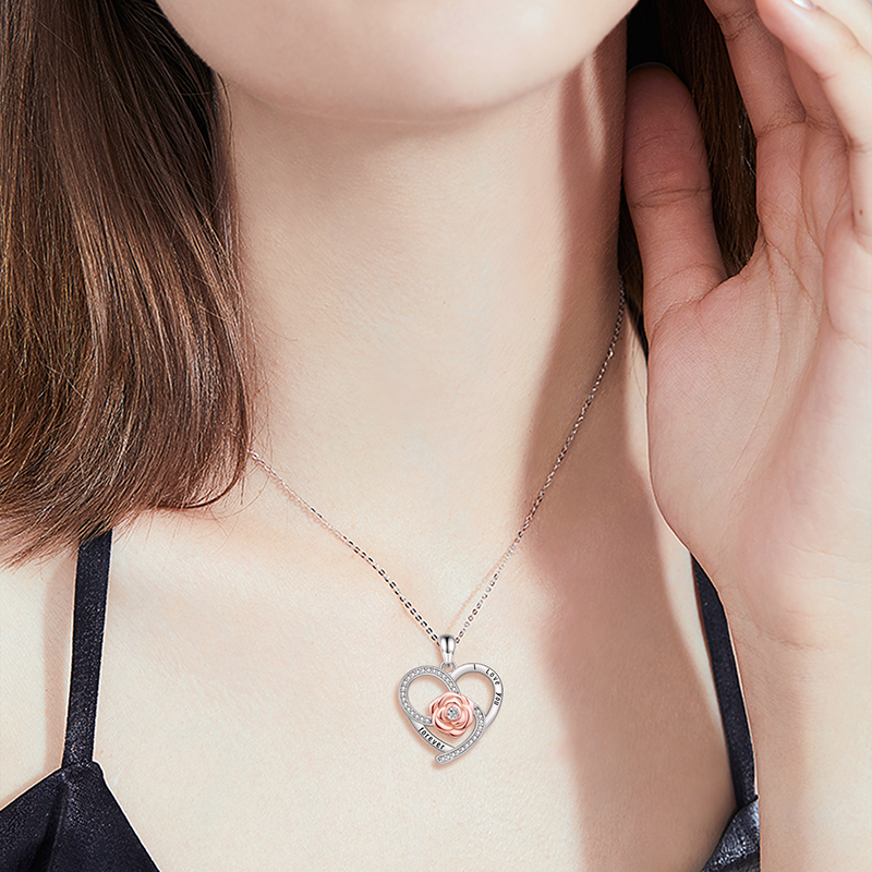 925 Sterling Silver Endless Love Rose Heart Necklace